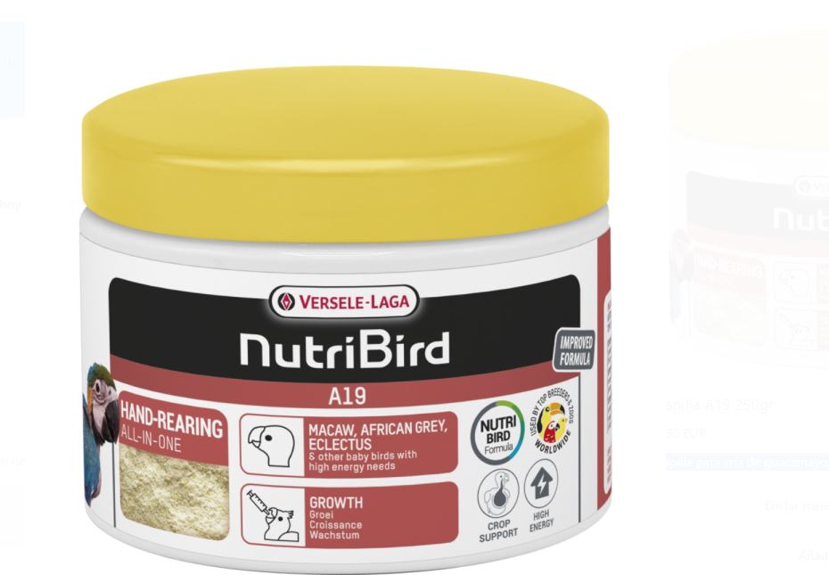 Papilla para cría de guacamayo, yaco, eclectus, etc.